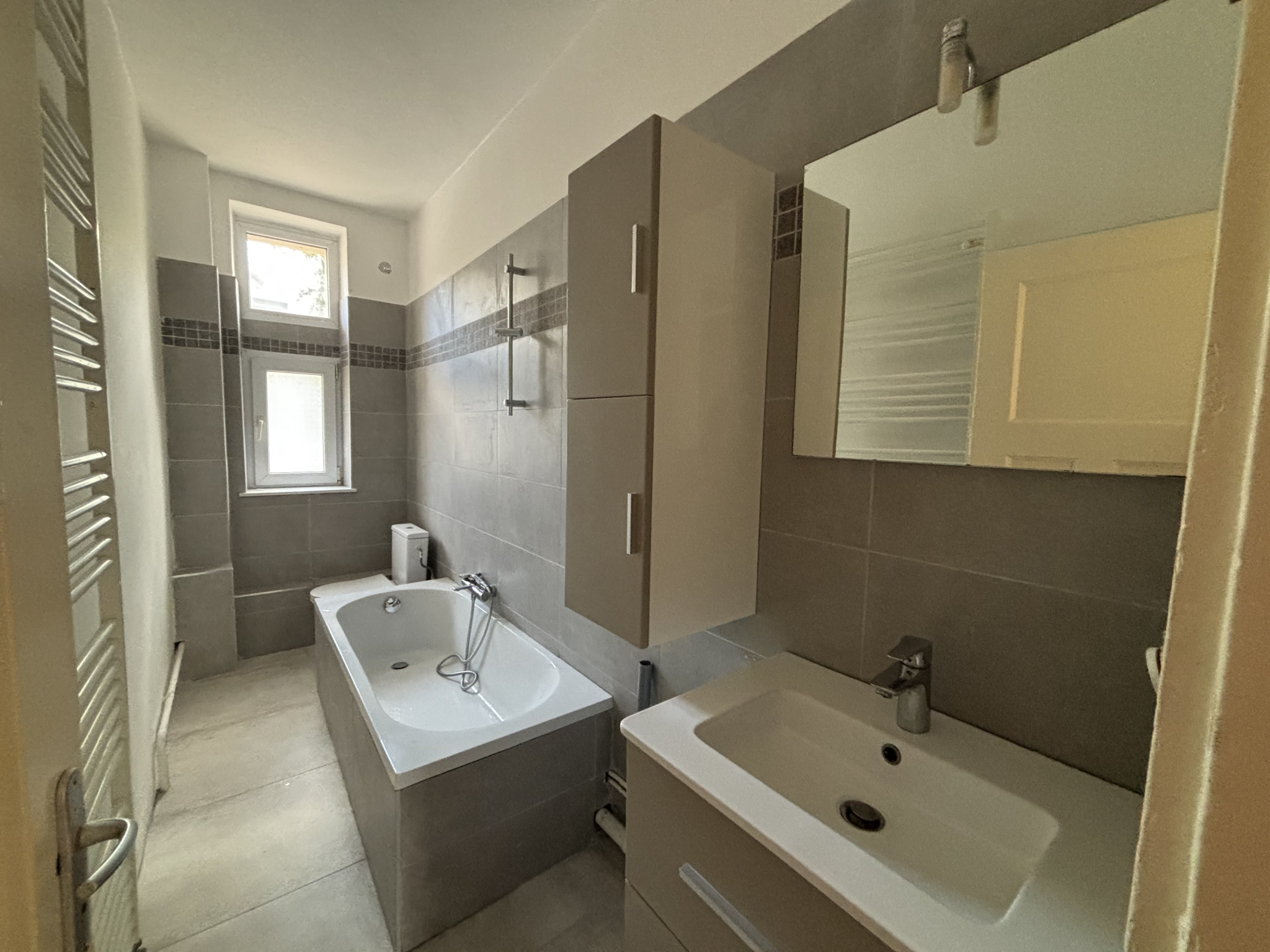 A 10 minutes à pied de la gare, proche de toutes commodités, un appartement au rez-de-chaussée surélevé de type 3 pièces comprenant un long dégagement desservant une salle de bain- WC refaite à neuf, une cuisine séparée et équipée, une pièce de vie, deux chambres avec grands dressings intégrés et en sous-sol une cave saine. LIBRE DE SUITE : 03 87 56 40 85