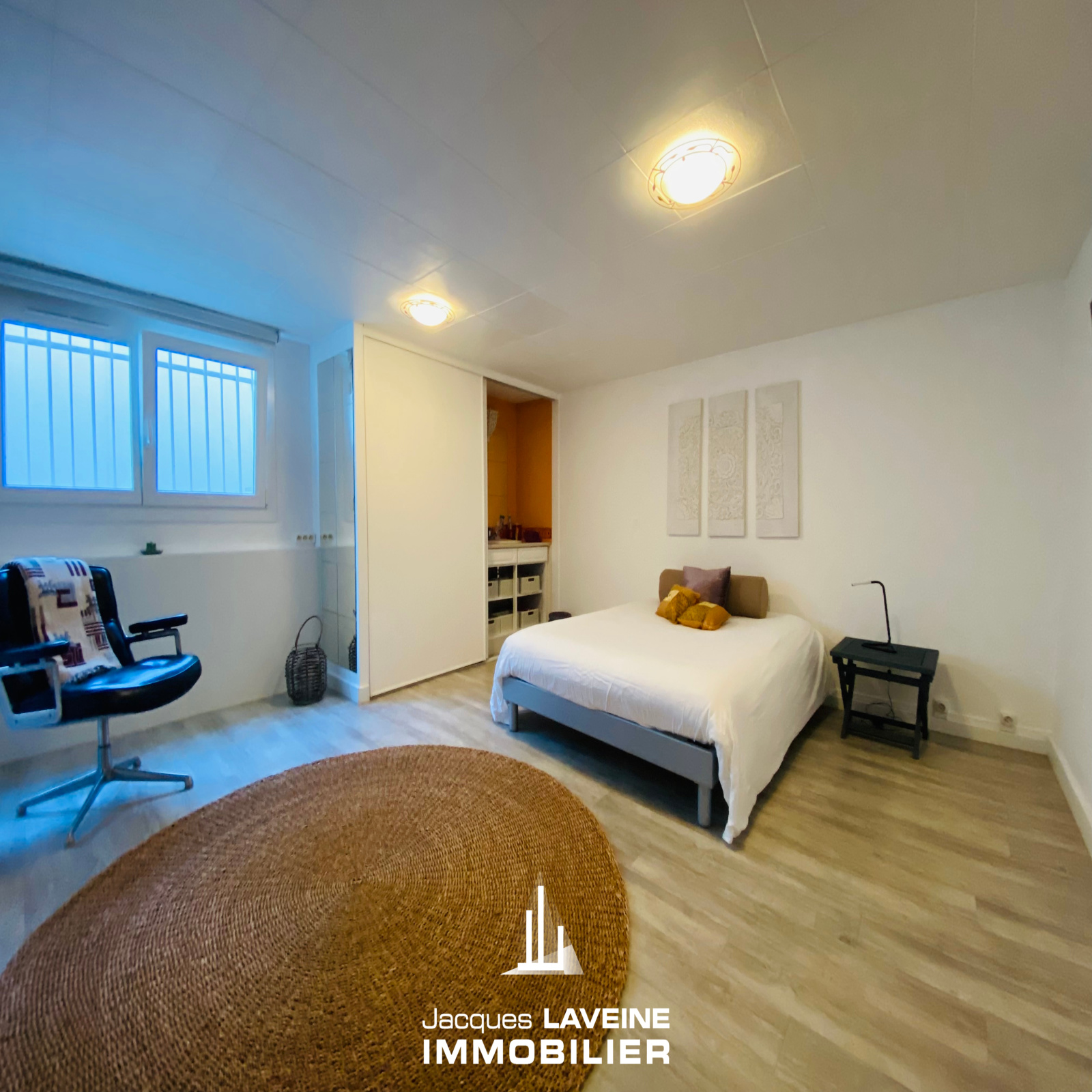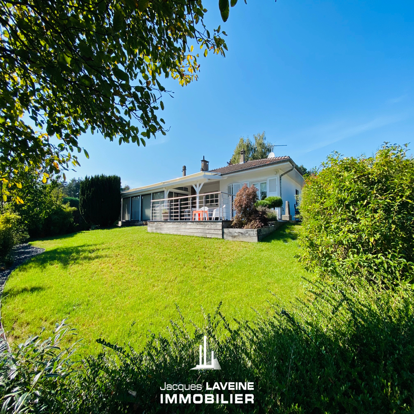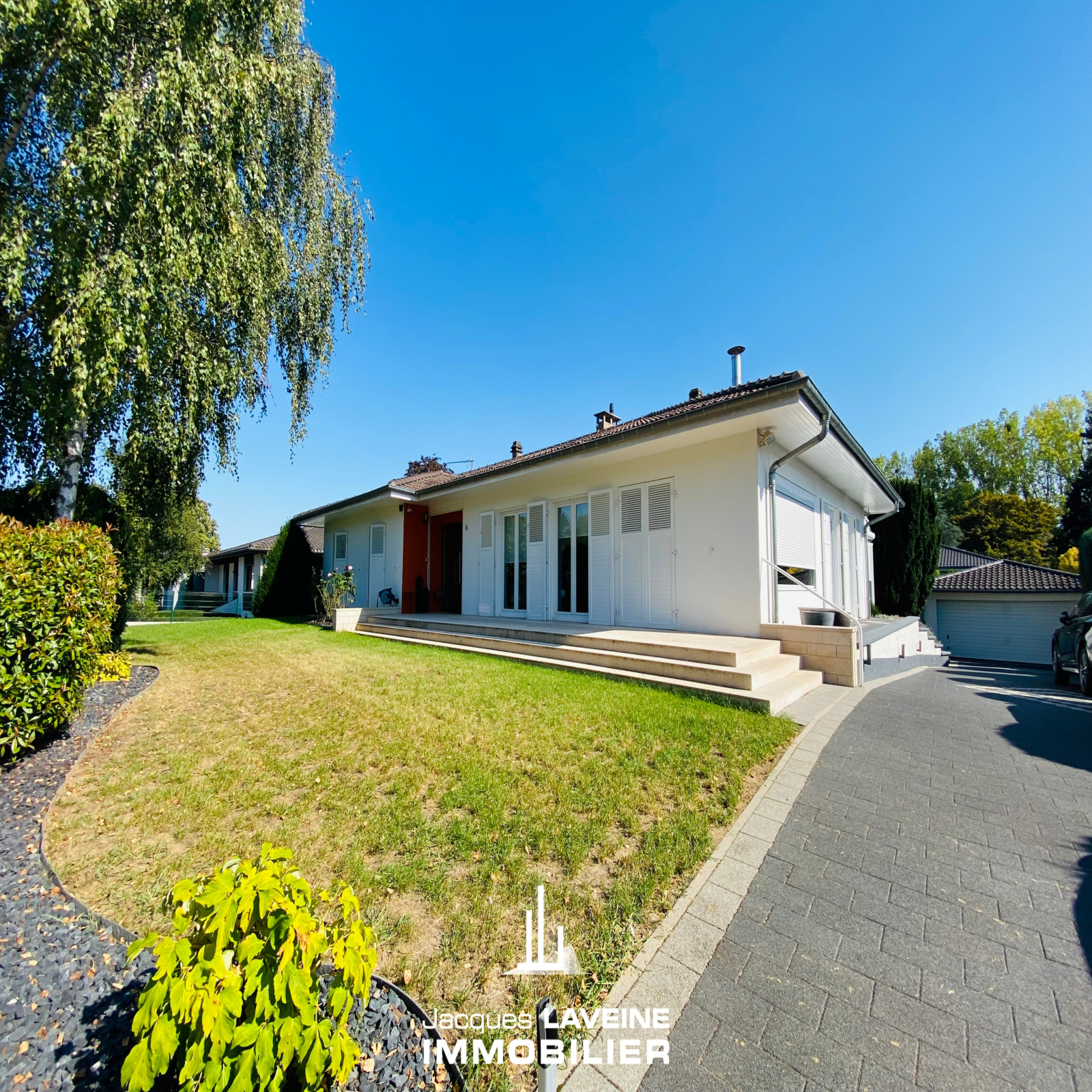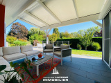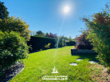 EXCLUSIVITÉ JLI! La Grange Aux Ormes! Secteur ultra résidentiel pour cette villa de 186m² de plain-pied sur sous-sol complet de près de 150m², vaste hall d'entrée avec vestiaire, lumineux salon-séjour de 60m² avec cheminée, ouvert sur cuisine équipée, accès par baies vitrées sur terrasse intime sans vis à vis, 3 immenses chambres dont une avec salle de douche-wc privative, une salle de bains complète et wc individuels. Au sous-sol, 3 pièces aménagées (chambre ou espace bien-être...) un cabinet de toilette avec douche, 2 caves, une buanderie-chaufferie, réserve. Garage attenant pour 2 Vl avec porte motorisée. Chauffage central gaz, climatisation centralisée. Parfait état d'entretien. Le tout sur un terrain arboré et paysagé de + de 12ares piscinable.