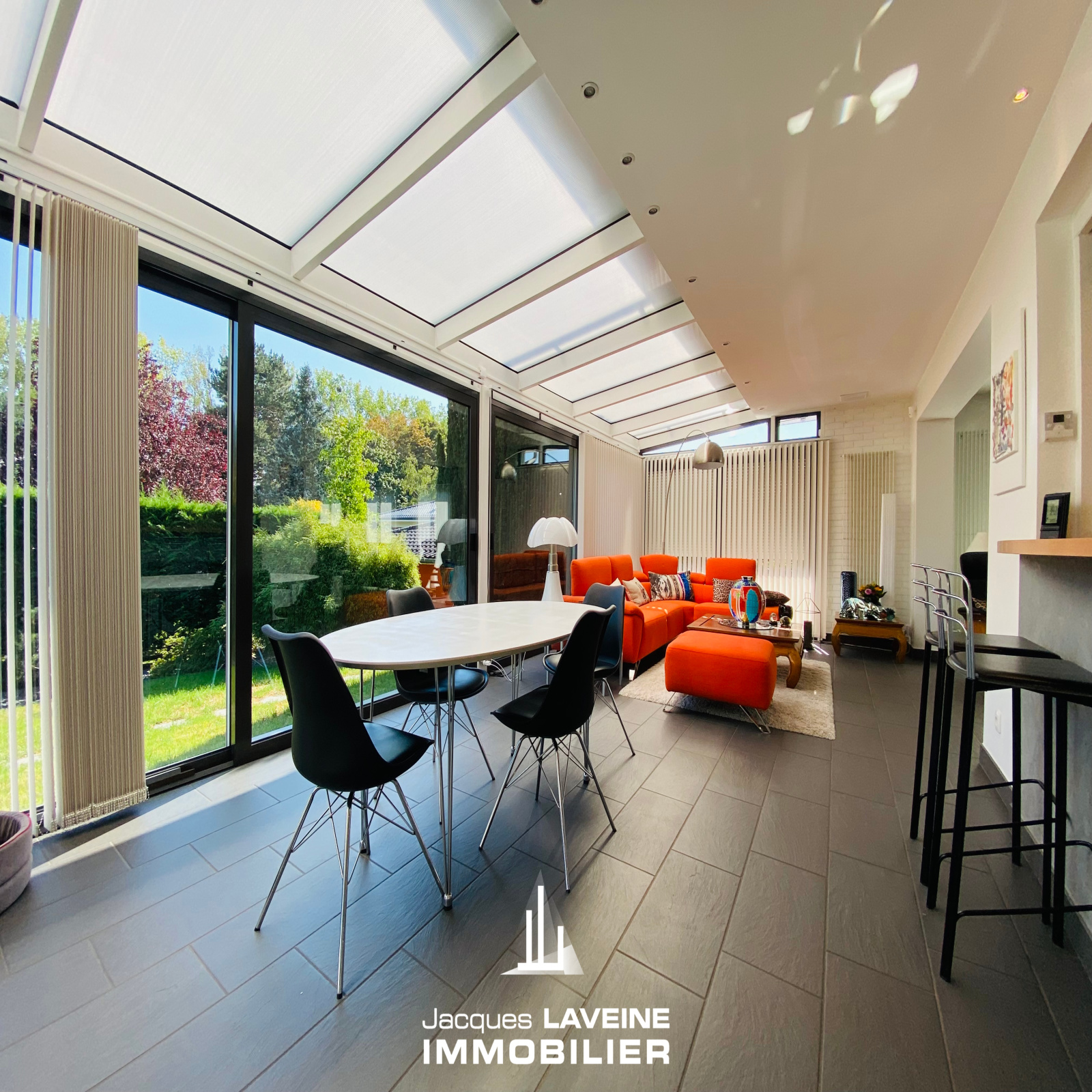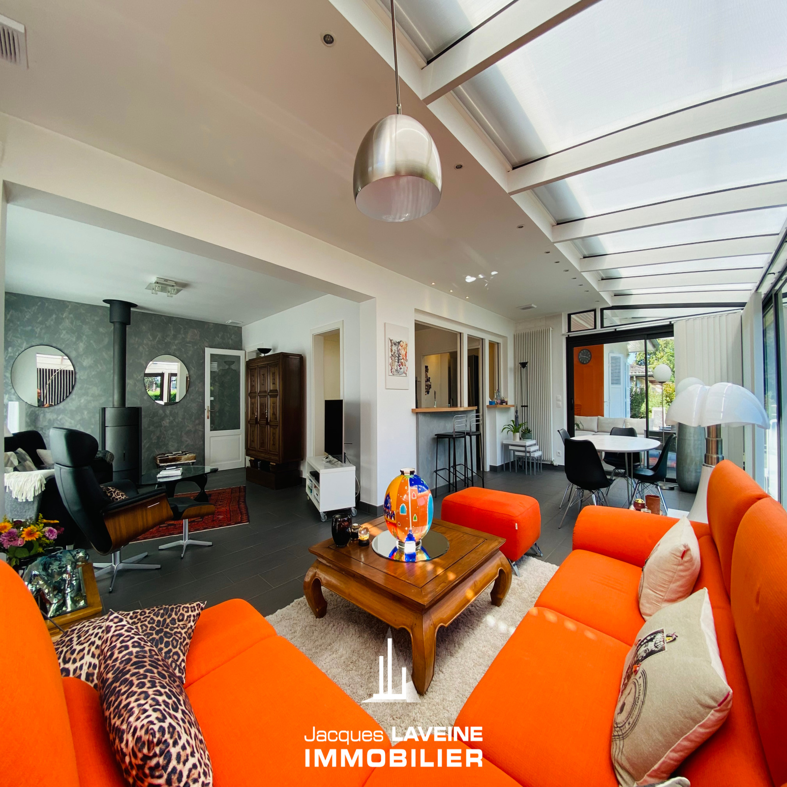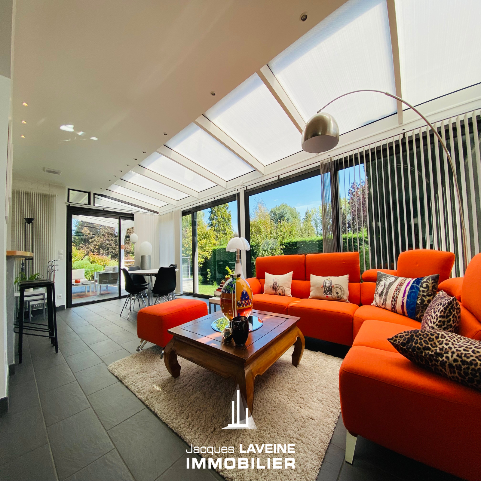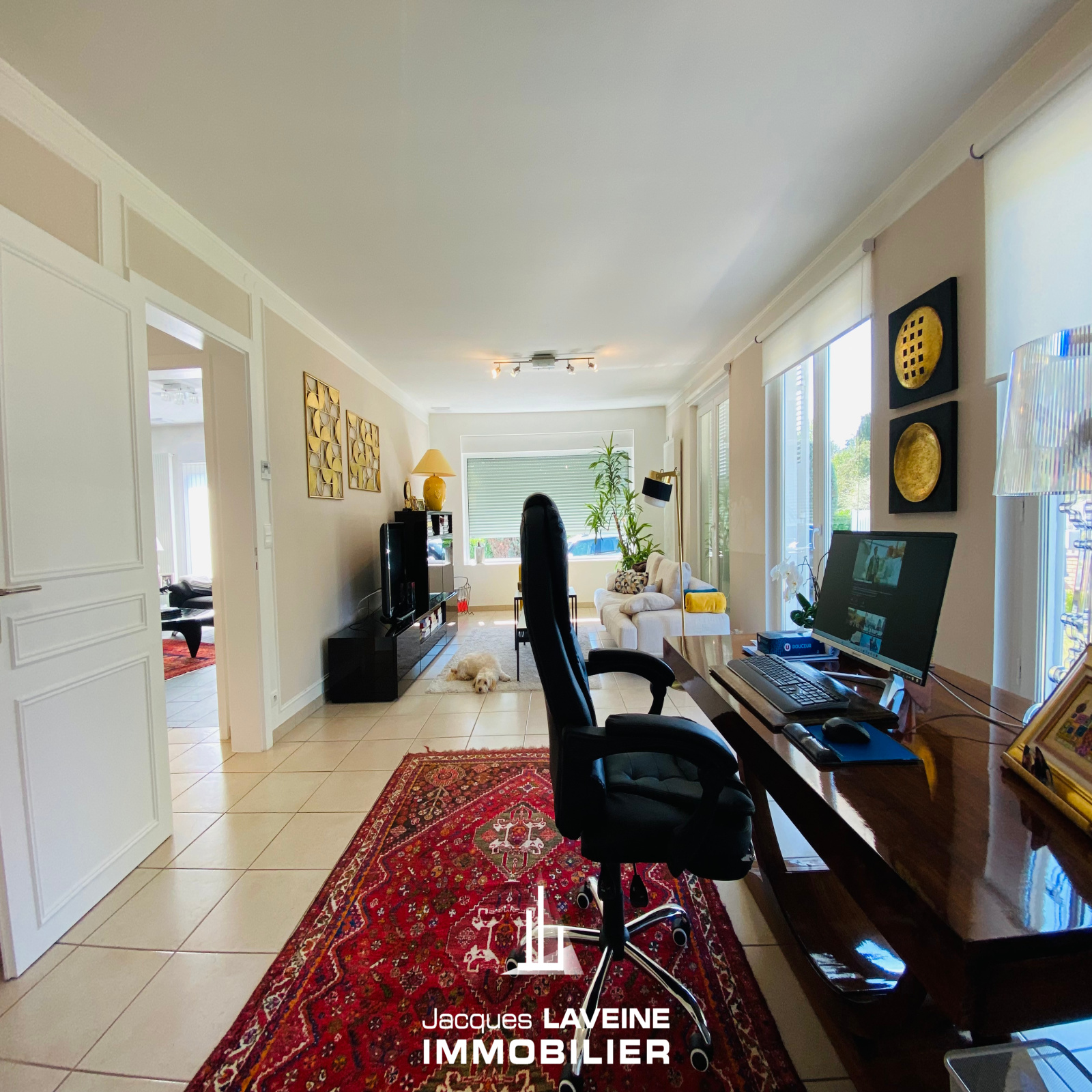 EXCLUSIVITÉ JLI! La Grange Aux Ormes! Secteur ultra résidentiel pour cette villa de 186m² de plain-pied sur sous-sol complet de près de 150m², vaste hall d'entrée avec vestiaire, lumineux salon-séjour de 60m² avec cheminée, ouvert sur cuisine équipée, accès par baies vitrées sur terrasse intime sans vis à vis, 3 immenses chambres dont une avec salle de douche-wc privative, une salle de bains complète et wc individuels. Au sous-sol, 3 pièces aménagées (chambre ou espace bien-être...) un cabinet de toilette avec douche, 2 caves, une buanderie-chaufferie, réserve. Garage attenant pour 2 Vl avec porte motorisée. Chauffage central gaz, climatisation centralisée. Parfait état d'entretien. Le tout sur un terrain arboré et paysagé de + de 12ares piscinable.