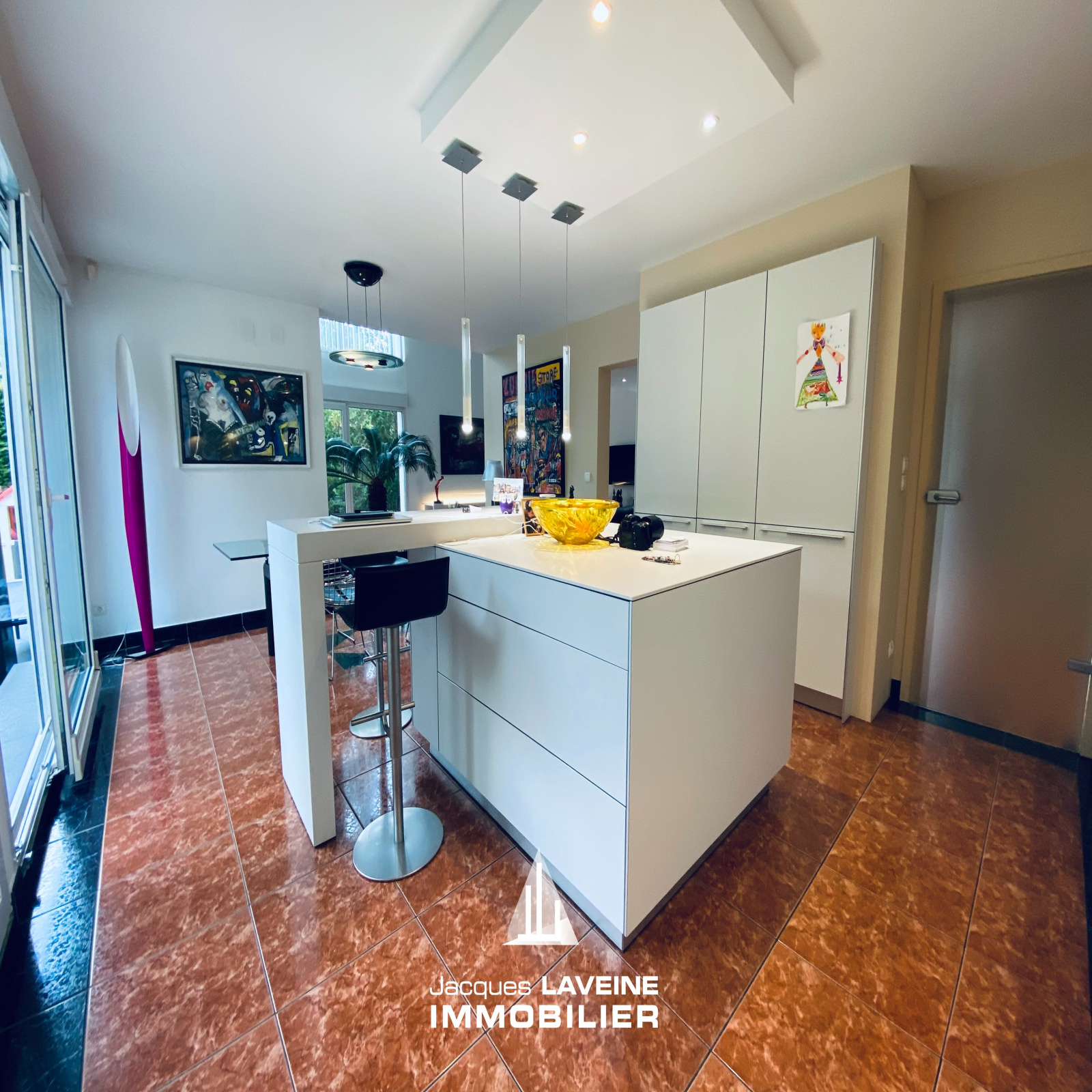 EXCLUSIF, venez découvrir cette magnifique villa de 204m² située dans un secteur hyper résidentiel, vous serez séduits par un très bel espace de vie de 42m² avec accès direct sur terrasses, une très belle cuisne équipée BULTHAUP et son espace repas, vous trouverez également de plain pied deux chambres dont une avec dressing, une salle de bains moderne et soignée, un espace de rangements, à l'étage vous trouverez un grande mezzanine servant de bureau, une chambre et une salle d'eau avec wc. En annexe une grande buanderie, un garage, une cave à vin climatisée, un grenier. La villa est équipée de DV PVC avec volets électriques, d'un chauffage gaz au sol et de panneaux photovoltaiques. Très beau jardin clos et arboré.