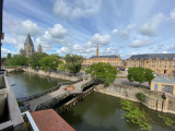 EXCLUSIVITÉ JLI! Dans environnement unique, vue sur la Place de la Comédie et le Théatre de Metz! Dans résidence de qualité en plein coeur de la vieille ville! appartement 5 pièces de 125m² situé en étage avec ascenseur, il comprend un vaste salon-séjour traversant de 56m² donnant accès à une loggia au bord de l'eau! 3 chambres, une cuisine, une salle de bains, une salle de douche. Nombreux rangements. Cave, parking souterrain et garage. A ne pas rater!