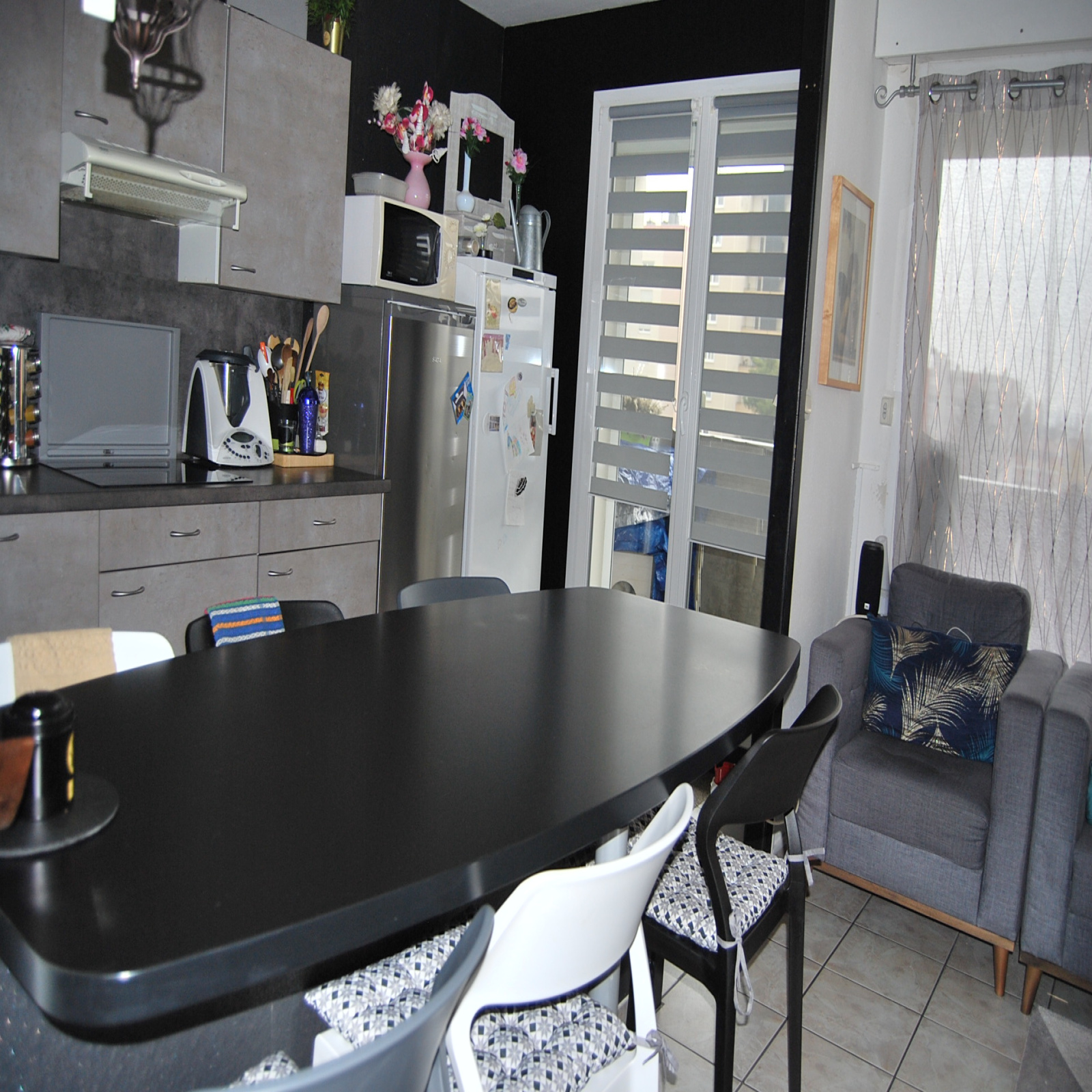 EXCLUSIVITÉ JLI! Moulins Saint Pierre, au troisième étage d'un petit immeuble proche toutes commodités (écoles, commerces, bus) bel appartement 4 pièces en très bon état comprenant une cuisine équipée US moderne ouvrant sur séjour et accès balcon de 8m², 3 chambres dont une avec dressing, une salle de bains, un wc, une cave et un garage.