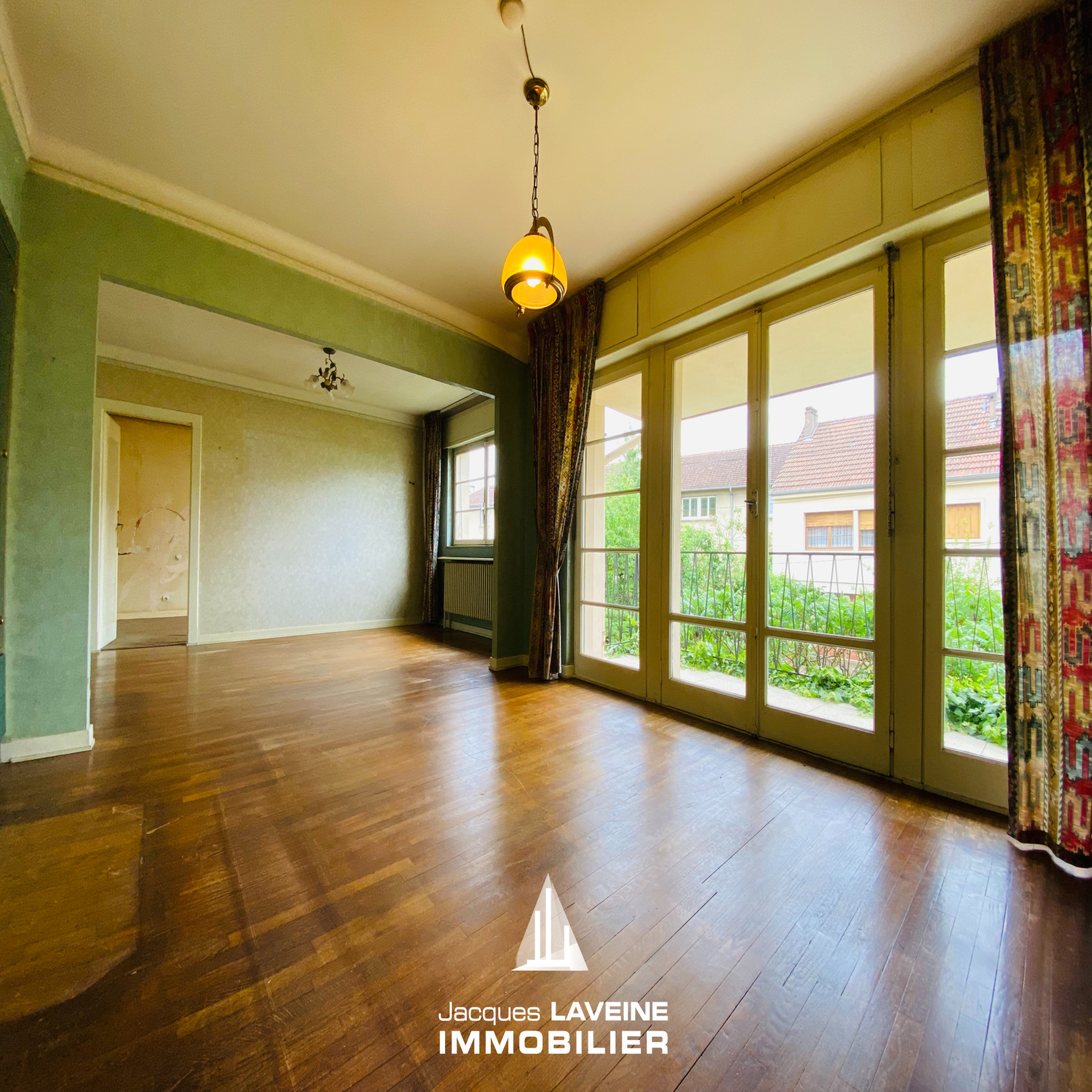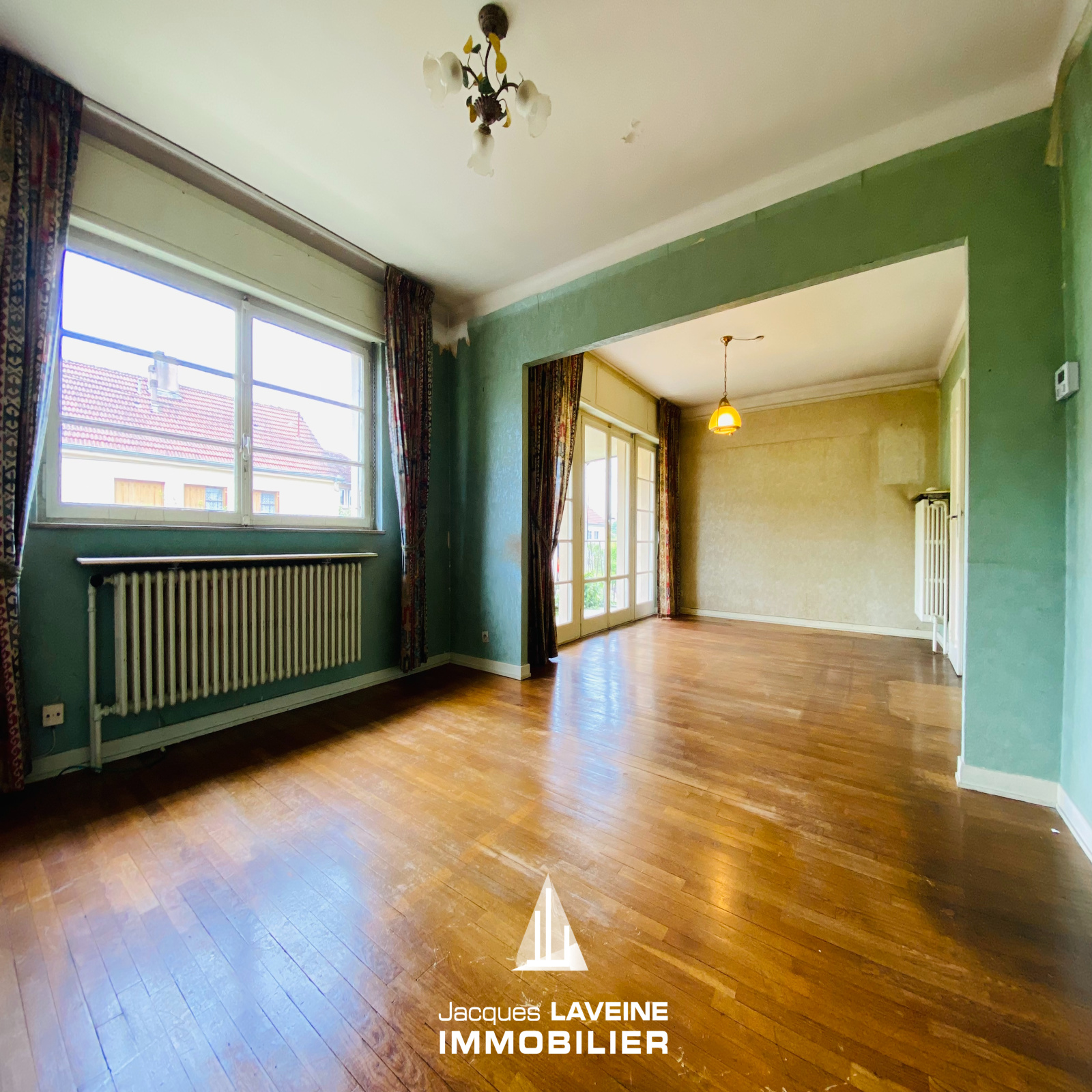 EXCLUSIVITÉ JLI! Au calme dans le quartier "Des Friches", proximité Canal et centre ville, maison mitoyenne d'un côté à rénover entièrement (sauf toiture), elle comprend en rdc surélevé, entrée, cuisine, salon-séjour avec parquets accès balcon, 2 chambres avec parquets, une salle de bains, un wc, le tout sur sous-sol complet avec garage, chaufferie,-buanderie et cave. Jardin clos de 3a66ca.