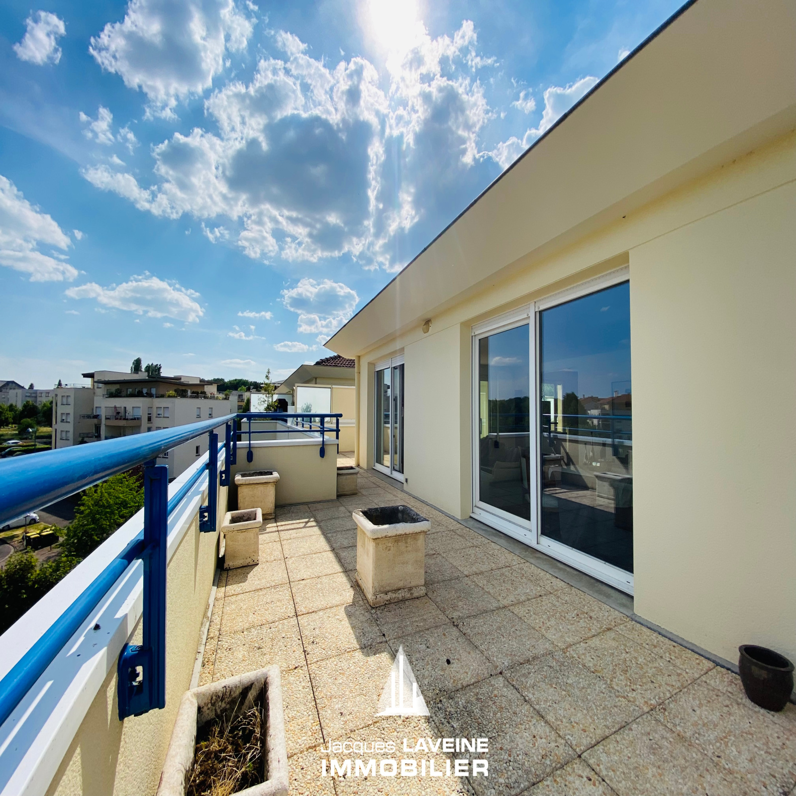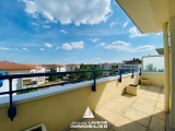 EXCLUSIVITÉ JLI! Metz Queuleu, dans résidence années 2000 de standing parfaitement entrenue au 4° et dernier étage avec ascenseur, lumineux appartement 5 pièces en duplex inversé, au niveau supérieur, entrée sur très bel espace salon-séjour, cuisine équipée, le tout accès sur une terrasse panoramique de 75m² par plusieurs portes fen^tres coulissantes, dégagement nuit avec placards, une chambre, salle de bains, wc avec coin buanderie, et au niveau inférieur, un dégagement avec placards, 2 chambres, une salle de douche avec wc. Cave et emplacement de parking en sous-sol. Chauffage individuel au gaz.