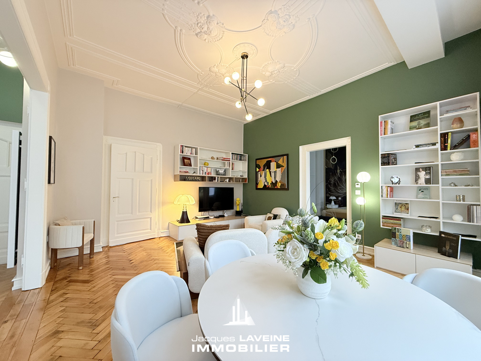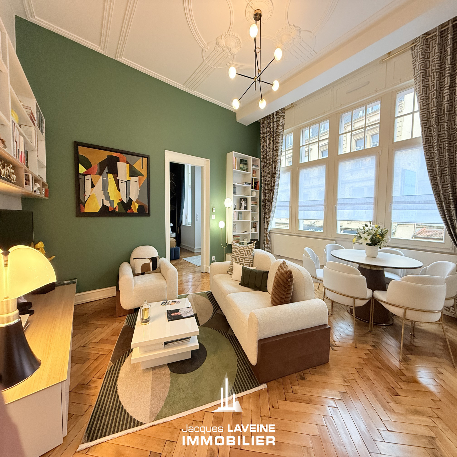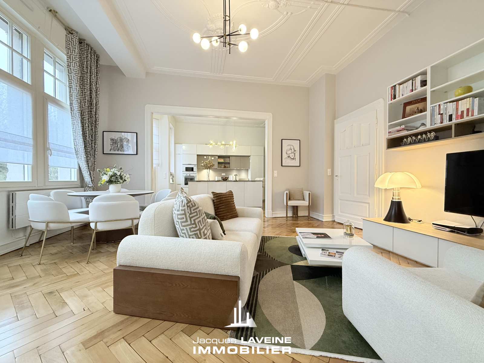 EXCLUSIVITÉ JLI! Face au jardin Botanique, dans remarquable immeuble bourgeois du début du XX° siècle, magnifique appartement 5 pièces entièrement rénové avec goût et matériaux de qualité, il comprend une belle entrée desservant, un espace salon-séjour ouvert sur cuisine équipée neuve, trois chambres, une salle de bains compléte prolongée d'une buanderie, wc individuels. Cave en sous-sol. Double vitrage pvc, volets motorisés. Parquets d'époque, moulures, hauteur sous plafonds... Charme incontesté, le tout en parfait état!