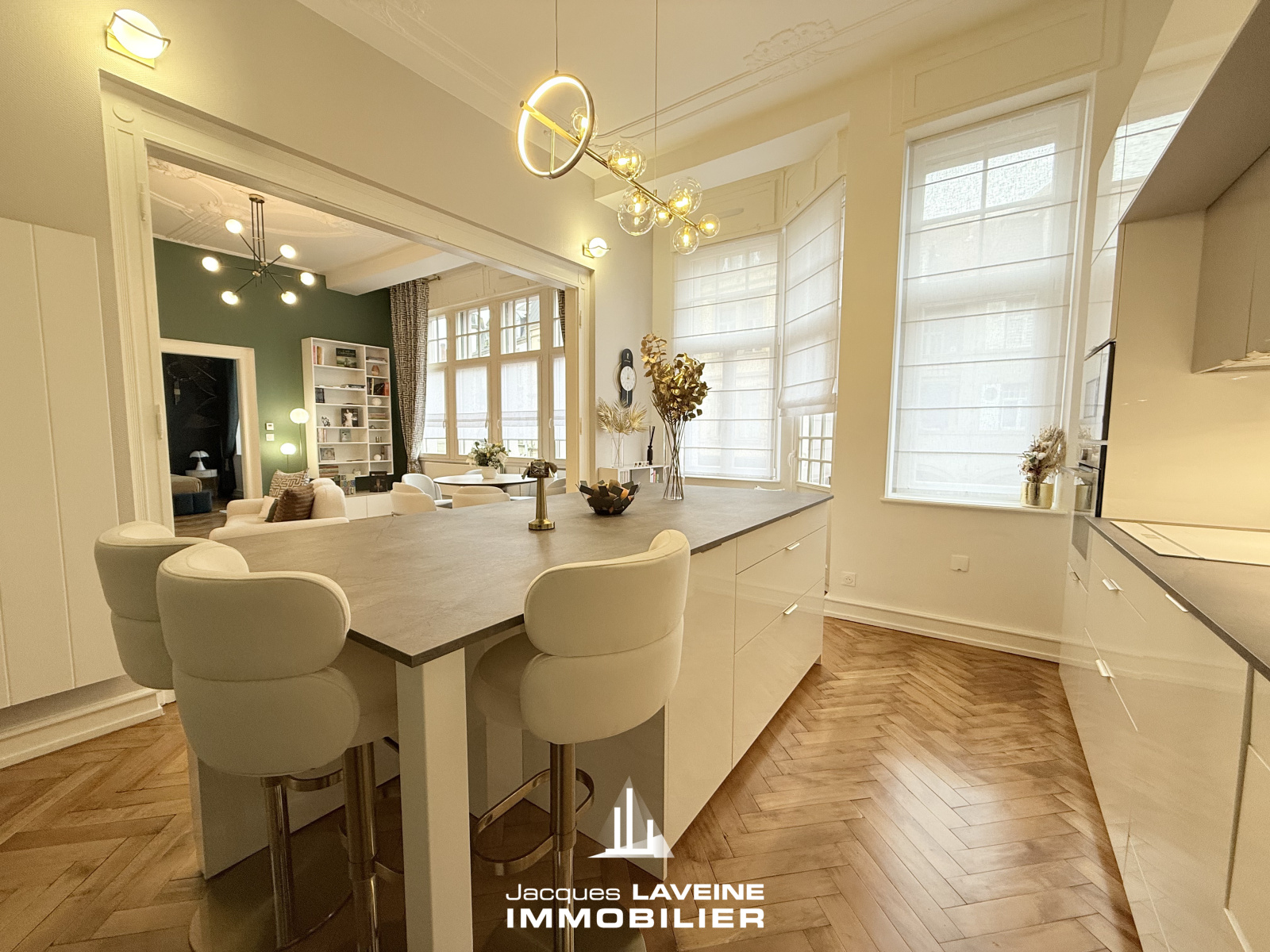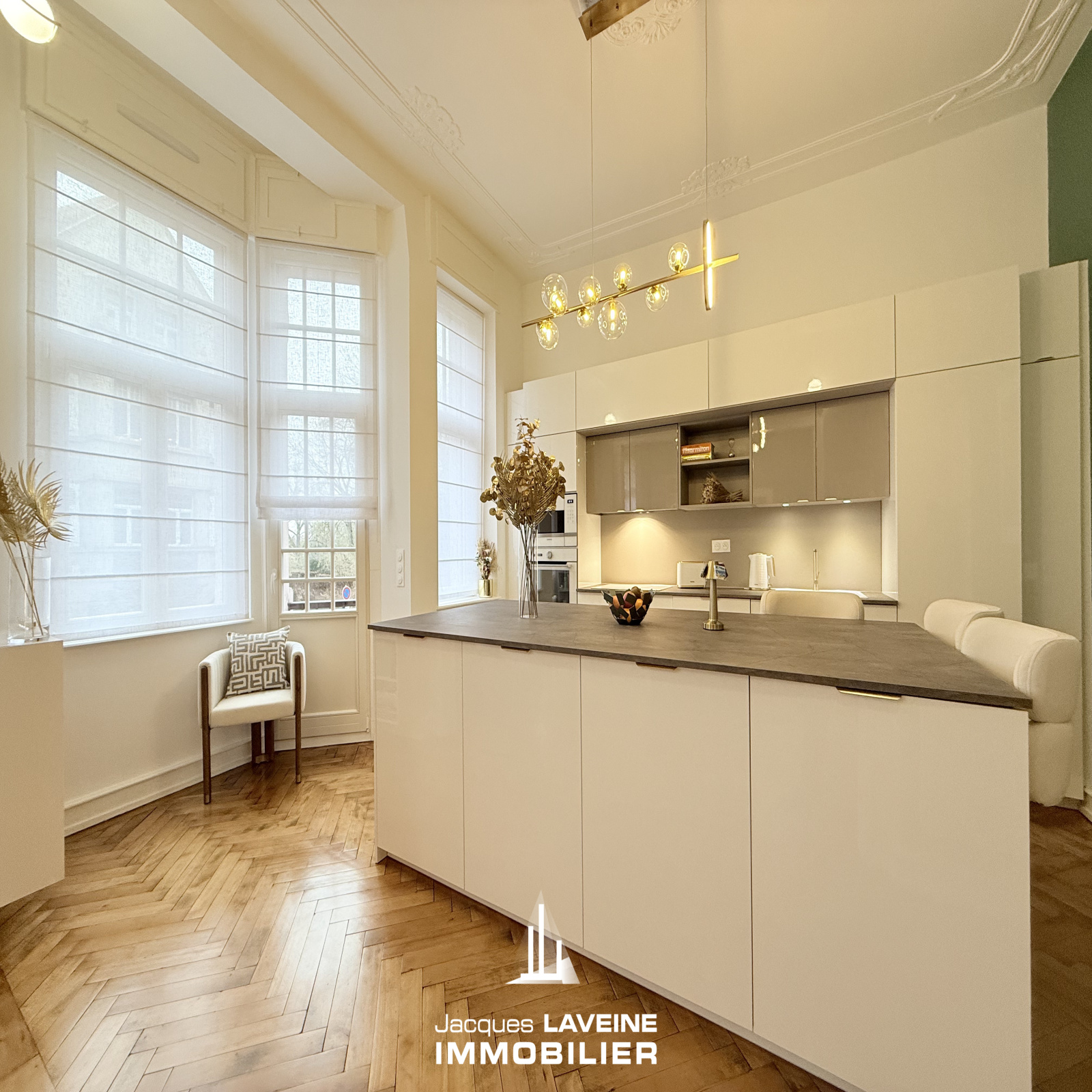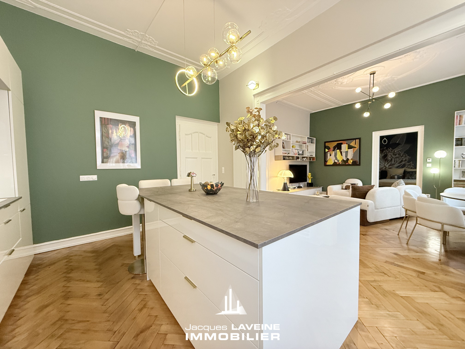 EXCLUSIVITÉ JLI! Face au jardin Botanique, dans remarquable immeuble bourgeois du début du XX° siècle, magnifique appartement 5 pièces entièrement rénové avec goût et matériaux de qualité, il comprend une belle entrée desservant, un espace salon-séjour ouvert sur cuisine équipée neuve, trois chambres, une salle de bains compléte prolongée d'une buanderie, wc individuels. Cave en sous-sol. Double vitrage pvc, volets motorisés. Parquets d'époque, moulures, hauteur sous plafonds... Charme incontesté, le tout en parfait état!